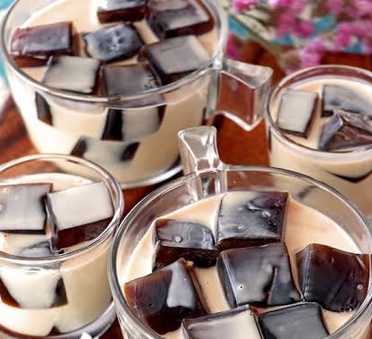•Cut coffee jelly into cubes and add to milk mixture. Chill for 30 Minutes to an hour. •Serve Immediately